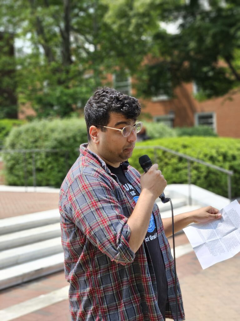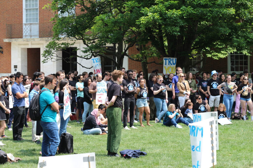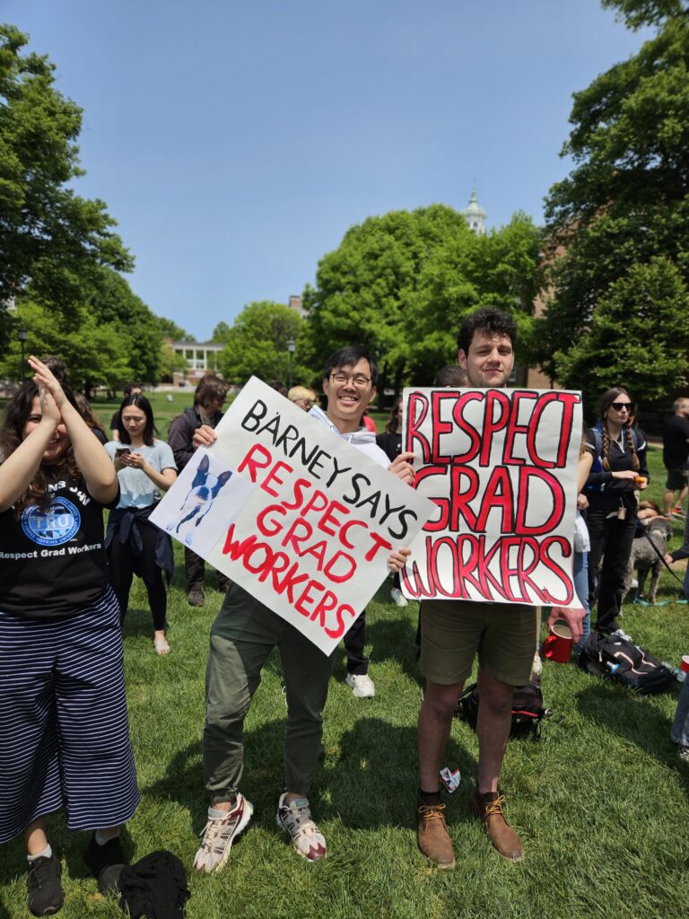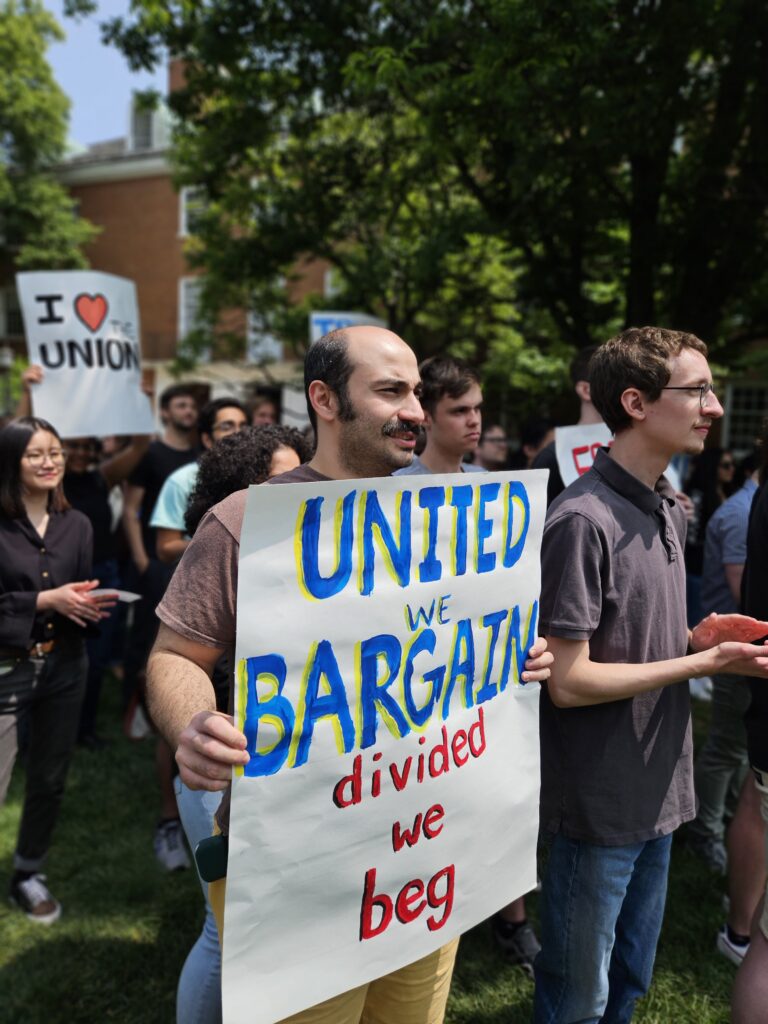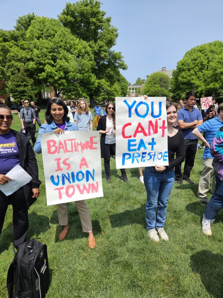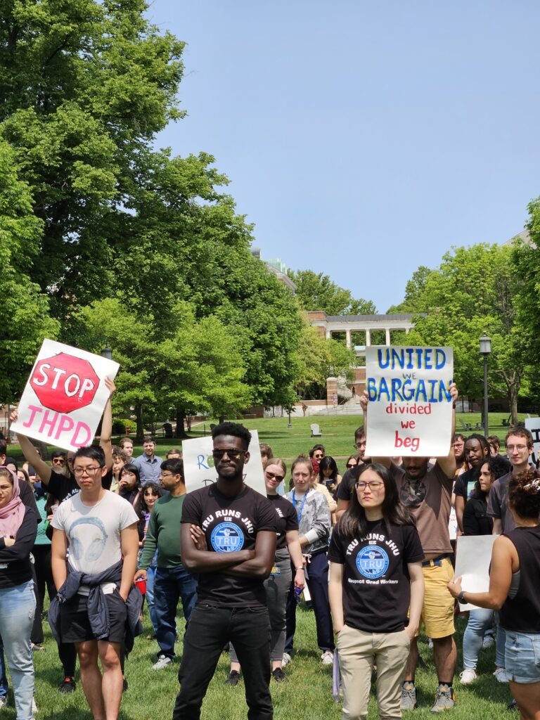 After electing a bargaining committee of 22 grads from across the university, collecting over 1,100 bargaining survey responses, and ratifying our contract proposals as a membership, we went to the bargaining table for the first time. Hundreds of grads rallied outside as our committee began negotiations in Shriver Hall. Chants could even be heard in the bargaining room. We made it clear to Johns Hopkins that we were ALL part part of this contract fight. United, we bargain! Divided, we beg!